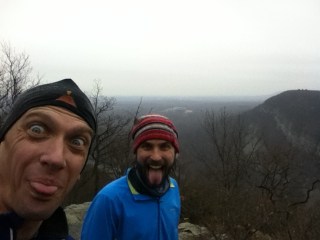 Thurs Jan 26, AM 9.9 Miles, 2:17 Triple Ascent of Mount Tammany with Dave. ~3500 feet of gnarly terrain, throw in some freezing rain, a major bonk, and increasingly frowzy shoes, and you’ve got a pretty good time on your hands.